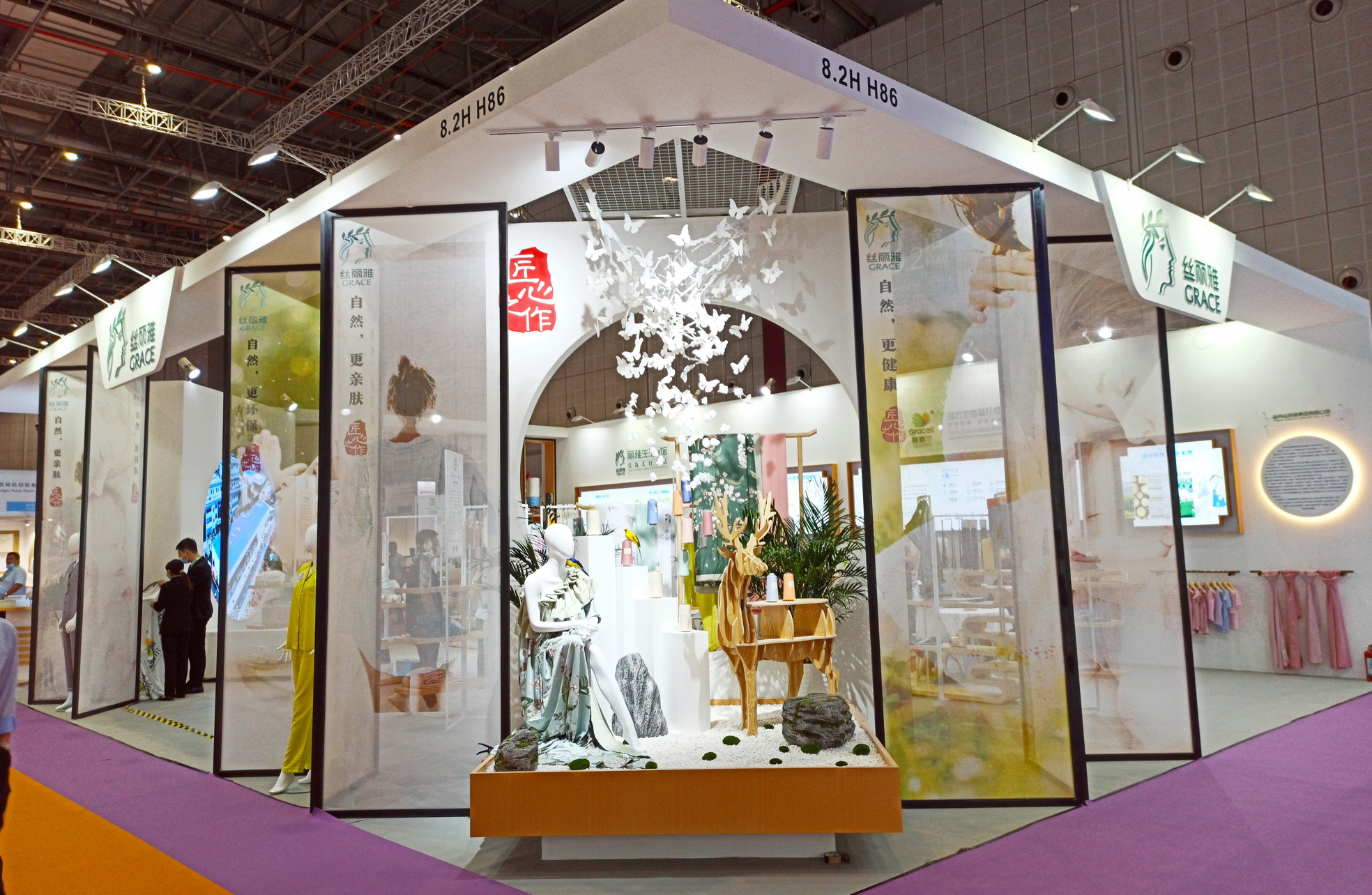 优质展品自然引人注目。展会期间,丝丽雅展位内人头攒动,众多供应商、采购商及参观者或驻足参观,或咨询洽谈。除了从前端原料到纺织终端产品的系列运用与展示之外,此次丝丽雅集团呈现的新中式展位设计风格同样也是吸引众多客流的亮点之一。此次丝丽雅展位以“匠心之作”为主题,面积共154㎡,是丝丽雅历次参展以来最大展位,不论是清新淡雅的中式屏风,还是源于天然、融于天然的产品陈列……都给过往客人留下深刻印象。走进展位,亲身接触与体验雅赛尔纤维及其系列终端产品后,大家更是对丝丽雅集团创新研发雅赛尔纤维产品及延伸应用赞不绝口。