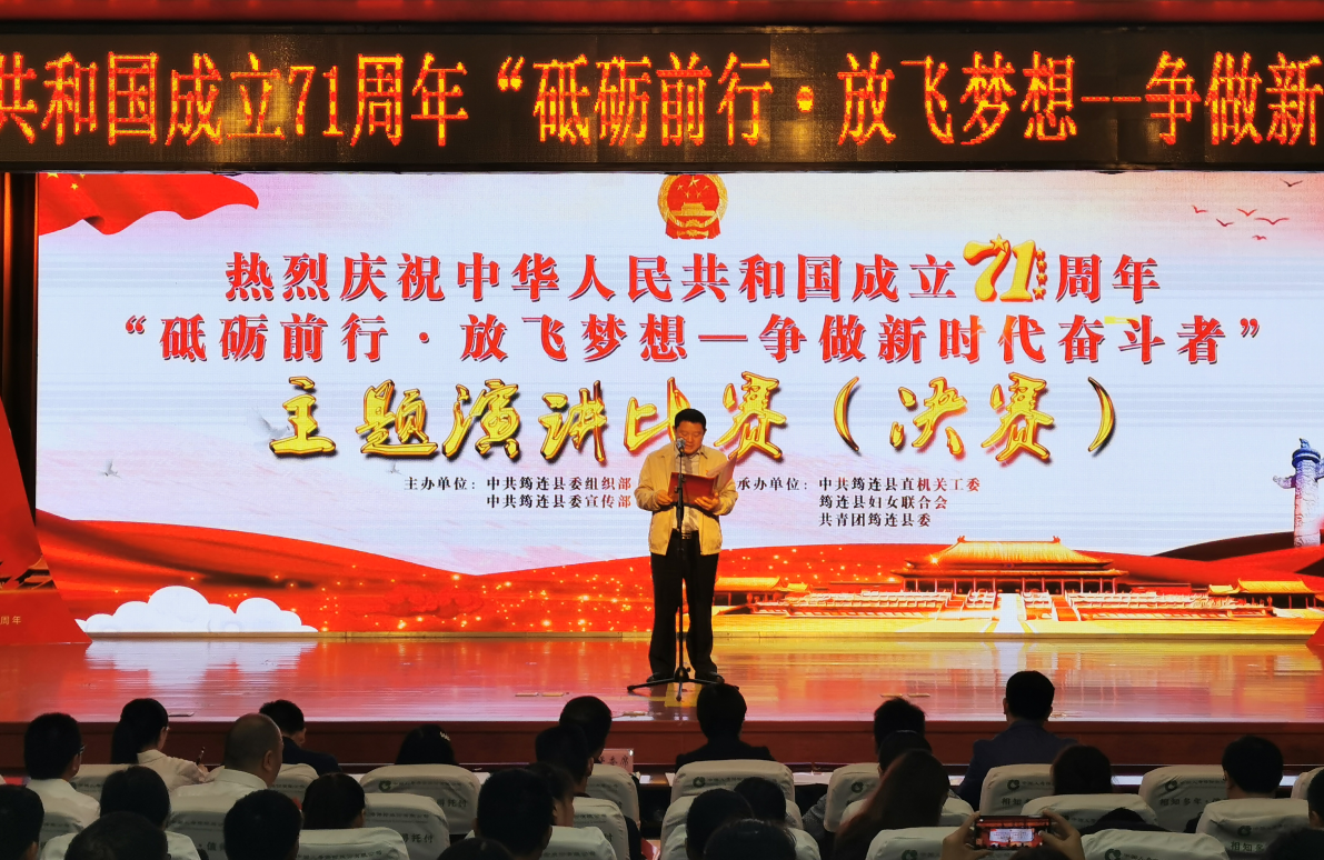 9月29日,在县委刘朝平书记饱含真情的致辞声中,筠连县庆祝中华人民共和国成立71周年“砥砺前行·放飞梦想—争做新时代奋斗者”主题演讲比赛决赛正式拉开帷幕。
