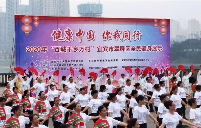 活动现场,翠屏区合江门老体协、大观楼老体协、象鼻老体协、健身舞蹈艺术团、秧歌腰鼓分会、太极分会等单位,表演了五百人舞蹈《文明在哪里》《健身气功八段锦》《歌唱祖国》《藏族健身操舞》《全国第七套健身秧歌》等精彩节目。