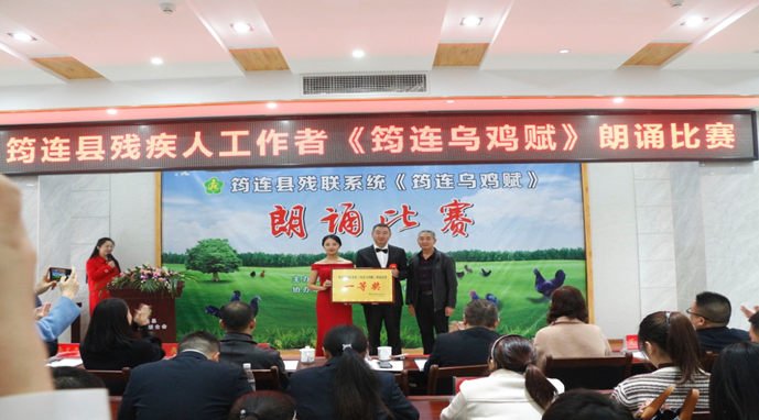 四川新闻网消息(李沁)为进一步加大宣传扶持农村残疾人发展乌骨鸡产业力度,大力弘扬筠连乌鸡文化,做大做强筠连乌鸡产业,让广大农村残疾人通过发展乌骨鸡产业增收致富。进一步提高全县残疾人事业工作者治理残疾人事务的能力和水平。10月30日,县残疾人联合会在县残疾人综合服务中心五楼会议室,举办了“筠连县残疾人事业工作者《筠连乌鸡赋》朗诵比赛”活动。来自全县12个乡(镇)残联及县残联5个业务板块组成的17支参赛代表队参加了比赛。县残联理事长李文忠;县科学技术协会主席、县作家协会党支部书记任永生出席了比赛活动。