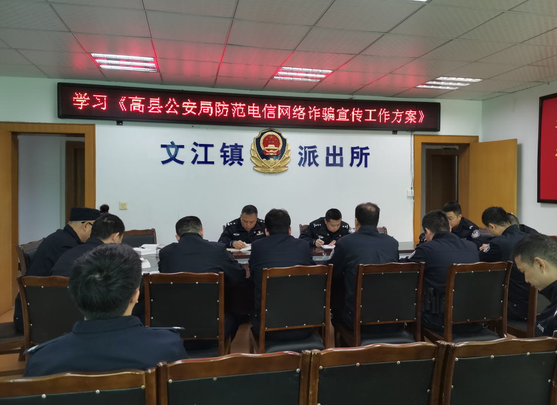 会上,派出所所长通报了全市涉电信网络诈骗犯罪问题突出重点区域情况,重点组织学习了《高县公安局“断卡”行动工作方案》和《高县公安局防范电信网络诈骗宣传工作方案》。