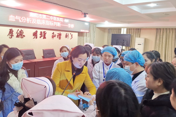 宜宾市第二中医医院外一科护士长范荣祥、内二科护士长李婷分别讲解了《休克患者的观察与护理》《血气分析及临床指标判断》,将危重患者的观察护理要点、采集血气分析标本的操作要点及注意事项进行了重点培训和现场示范。