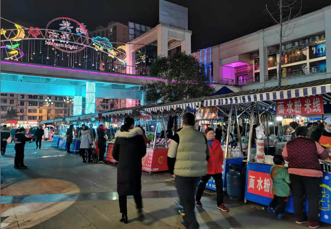 该县在抓好重点场所疫情防控常态化管控的前提下,加快推进财富中心商业街打造规范有序的夜间经济聚集区,以激发消费活力,繁荣市场经济,提升夜间消费对全县经济发展的带动作用。通过布设天街亮化门头、天街连廊夜间亮化氛围彩灯、统一布置夜市摊位等方式,打造独具高县特色的夜市经济。