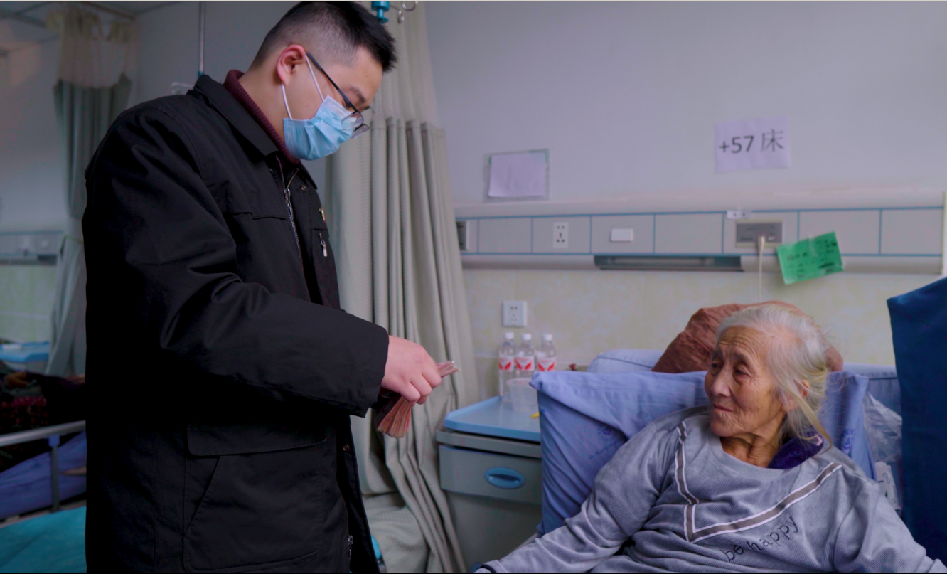 事情的经过是这样的,筠连县法院在执行申请人袁某华与被执行人袁某才返还财物纠纷一案过程中,被执行人袁某才尚有15000元案款未履行,不料袁某华突然病逝。即便如此,承办法官多次对被执行人袁某才释法明理,告知其应履行的法律义务,最终,被执行人将余下15000元案款交到法院。后经承办法官多方了解,申请人袁某华未婚且无子女,目前仅其母亲杨某珍在世,于是便通知杨某珍到法院领取案款,但杨某珍目前因病正在住院,不便前往法院办理领取手续,且其年岁已高不会使用银行卡。掌握这些情况后,执行干警决定到医院将案款以现金形式送至杨某珍手中。于是便出现了本文开头的一幕。