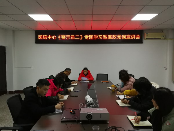 四川新闻网消息(赵欣)为进一步抓实党员干部警示教育工作,发挥身边事教育身边人效果,医培中心于1月7日在三楼会议室组织集中学习,学习由翠屏区纪委监委编写的《警示录二》案例,中心全体党员和干部职工参加了会议,会议由中心副主任唐剑主持。