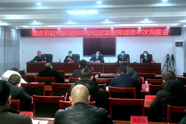 四川新闻网消息(杜云 张必柱)为贯彻落实中、省、市疫情防控指挥部工作部署,进一步推进疫情防控工作全面落实落地,1月15日,筠连县召开应对新冠肺炎疫情应急指挥部第41次调度会。中共筠连县委副书记、县长、筠连县应对新冠肺炎疫情应急指挥部指挥长谢晓丹,筠连县人大常委会主任、筠连县应对新冠肺炎疫情应急指挥部常务副指挥长雷敏出席会议。