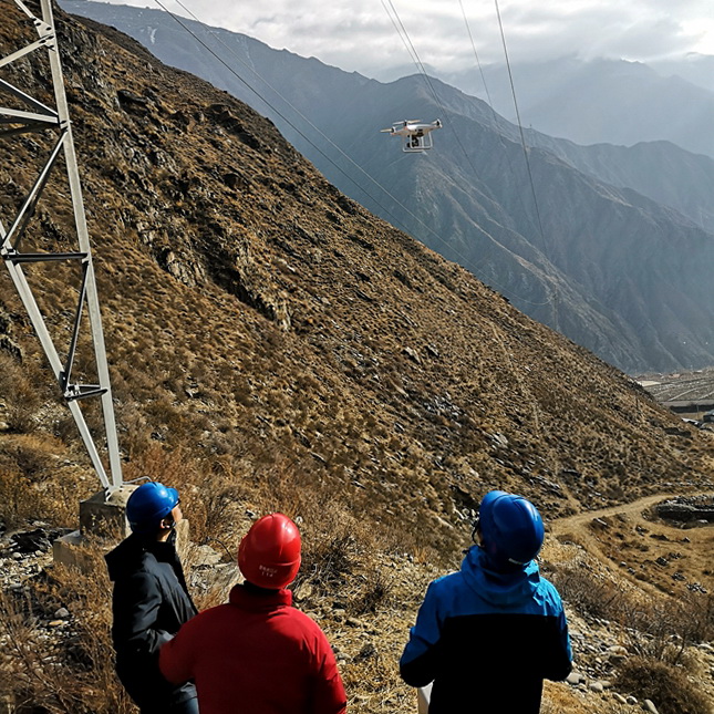 国网宜宾供电公司援藏帮扶人员克服高原缺氧,山高路陡,早晚温差大的困难,采用无人机飞巡和人工巡检相结合的方式,对重点区域、重要设备、重点部位进行密集巡视,动态消除隐患。