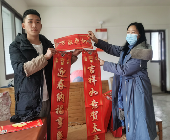 志愿者们带上春联、围巾、保温杯和床上用品来到受助学生家里,了解他们在新学校的学习、生活情况,做好心理关爱服务和教育引导,鼓励他们好好学习、积极生活,将来才能更好地回馈社会;志愿者们与受助学生互留电话、微信建立起持续、紧密、稳定的情感链接,以便为他们提供更持久的支持陪伴、心理关怀和生活指导,帮助他们更好地融入社会、回报家乡。