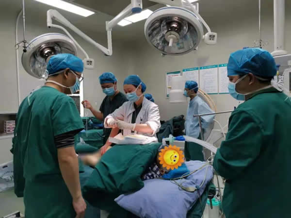 手术当日,由麻醉科汤荣兴副主任医师实施麻醉,针对该病人制定完善的麻醉预案,充分准备,精心操作。手术开始前留置有创动脉测压、血氧饱和度等监测手段,并在超声引导下实施髂筋膜阻滞,确保围手术期平稳安全。骨科副主任王学文,骨科黄帆博士对病人进行“左股骨PFNA内固定术”,手术成功。术后,患者进入ICU病房,生命体征平稳。