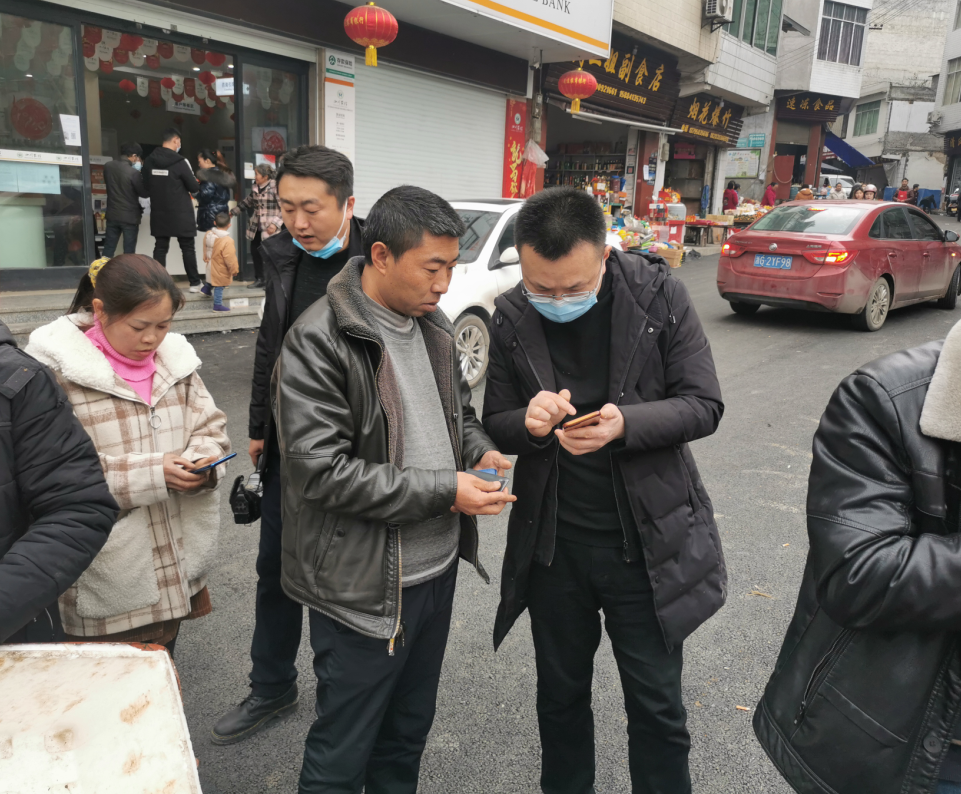 上午,政府机关全体职工分为两人一组,现场指导银行、超市、餐饮等经营场所生成场所码,并开展疫情防控知识宣传,传达最新防控要求。同时,“手把手”指导前来赶集的群众,注册申领“四川天府健康通”健康码。