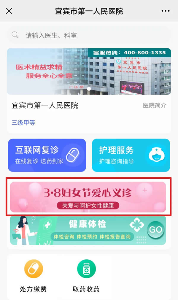 2、实名注册或登录互联网医院后,选择“3·8妇女节爱心义诊”进入活动页面。
