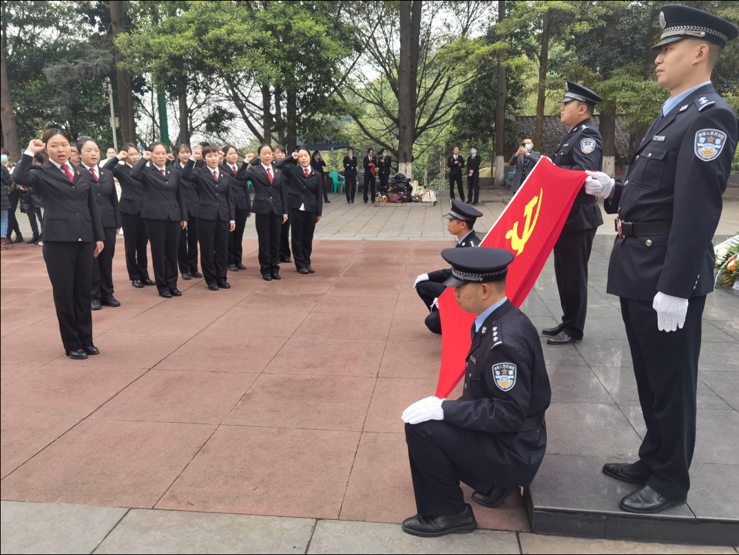 参观中,女干警们认真聆听学习了赵一曼革命烈士的英雄事迹。在赵一曼塑像前,女党员干警们整齐列队,庄严肃立,在鲜艳的党旗下,重温了入党誓词。