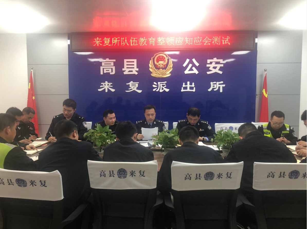 四川新闻网消息(来复)为深入推进队伍教育整顿工作走深走实,提高全所民警、辅警思想认识,检验学习成效。3月19日晚,高县来复派出所利用队伍教育整顿夜间集中学习的契机开展应知应会测试。