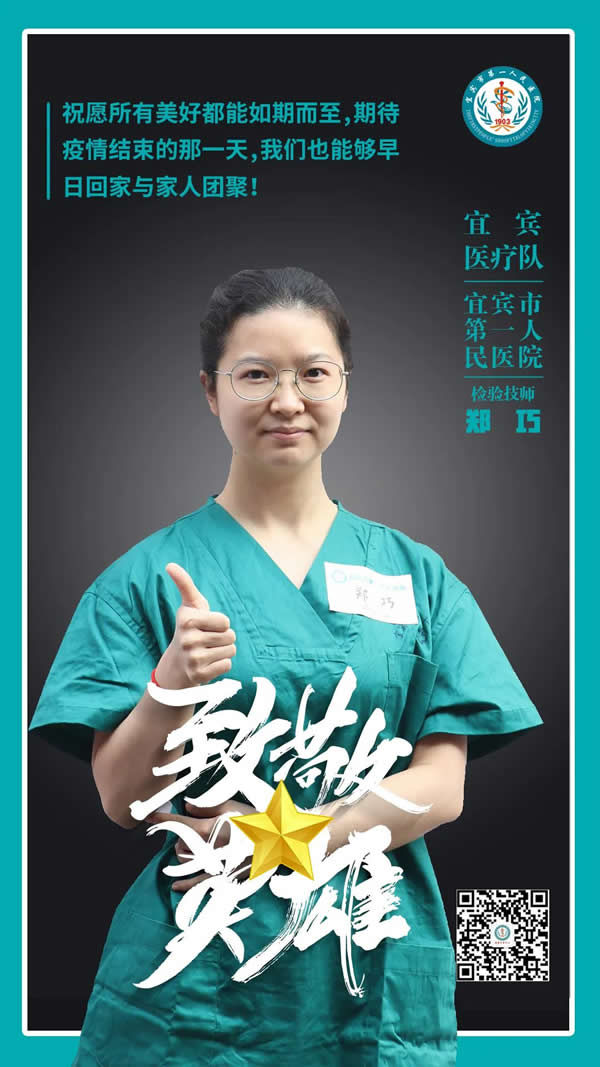 在53个坚守的日夜里,在门诊每天和新型冠状病毒接触中,脸上布满口罩的压痕,防护服里打湿的衣衫,郑巧依然全力以赴,迎难而上。她说:“我们检验工作者是不易被人看到的工作者,但也无需让人看见,只需坚守抗疫,为党和国家贡献自己的一份力量,在‘全心全意为人民服务’道路上,实现自身价值。”