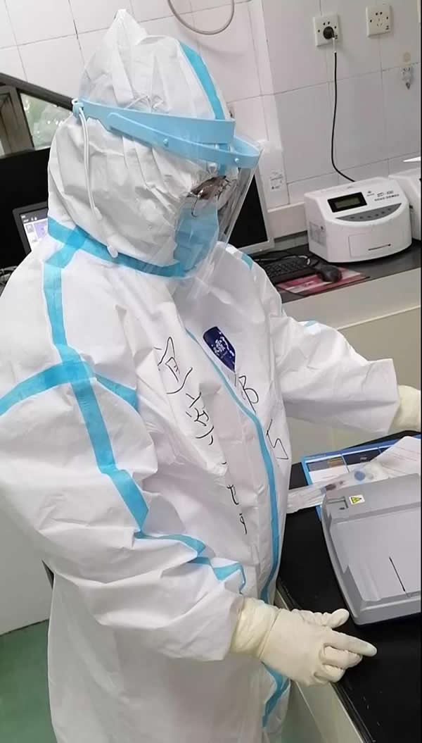 在实验室的工作中,她一呆就是六个小时,作为疫情防控阻击战的侦察兵,她始终以严谨的工作作风、顽强的工作态度,直面没有硝烟的防控战场……