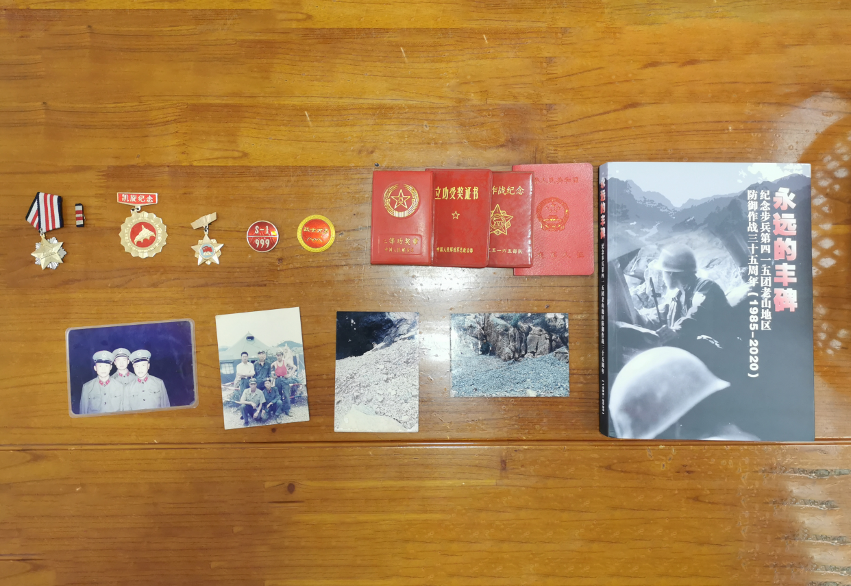 肖世金志向愿者们一起分享了老山防御作战经历和牺牲战友的动人故事。茶几上,二等功奖章、凯旋纪念章、八一纪念章格外耀眼。一张张老照片记录肖世金和战友们的峥嵘岁月。这本叫《永远的丰碑》的书籍是肖世金的最爱,记录了肖世金和战友们的故事,详细描写了肖世金受伤和治疗的经过。“参加这次志愿者活动,我受益匪浅。作为一名教师,我更应该把肖叔叔和他战友的故事,传递给我们的学生,让更多人知道。”志愿者袁飞龙认真翻开着肖世金作战时的照片。