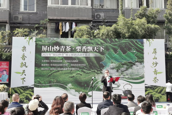 四川新闻网消息(记者 周瑜原)4月3日上午,以“屏山炒青茶 · 栗香飘天下”为主题的2021年“屏山炒青”展示展销活动在四川成都宽窄巷子拉开序幕,来自屏山县的13家茶企将在这里进行为期3天的展示展销。此次活动由宜宾市屏山县委、屏山县人民政府主办,中共屏山县委宣传部、屏山县农业农村局承办,是为深入贯彻《屏山县茶产业提质增效发展规划(2020-2025)》,更加科学地促进茶农增收、茶产业结构调整和升级,加快实现全市乃至全省现代茶产业示范县,提升屏山县茶产业在全省的知名度、影响力以及品牌价值。
