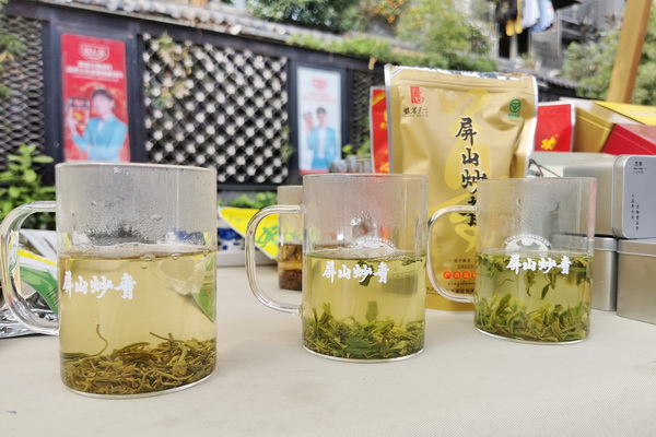 开幕式上,茶艺师们进行了盖碗茶、功夫茶等舞蹈表演。展示展销区,功夫韵、桑抹茶、屏山炒青、绿毛峰等茶叶品牌吸引过往的游客驻足品味。