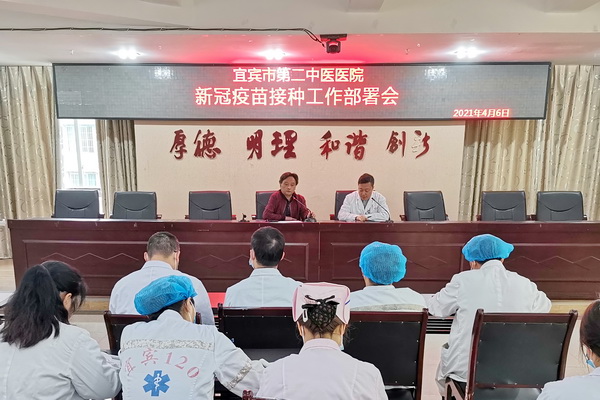 卫生健康行业带头接种,目的是向全社会释放疫苗的安全性、有效性以及对维护群众健康的积极作用,引导群众主动预防接种。4月6日上午,宜宾市第二中医医院副院长吴珂向全院职工做了新冠肺炎疫苗接种工作部署,宜宾市第二中医医院院长张主权在会上强调,新冠肺炎疫苗接种是当前一项重大的政治任务,领导干部要带头接种,并向员工和患者及其家属加强政策解读和科普宣传,增强群众接种意愿。