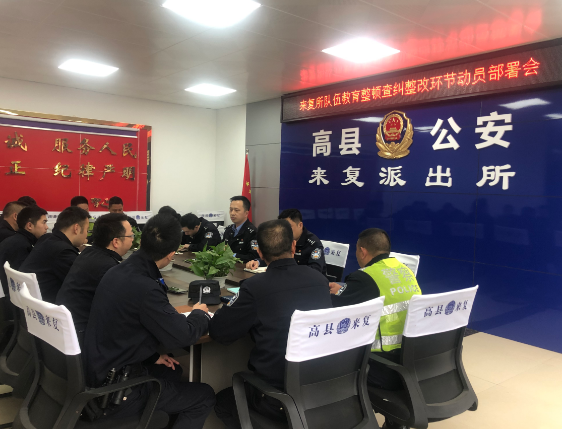 四川新闻网消息(苏风) 4月11日,来复派出所组织召开队伍教育整顿查纠整改环节动员部署会,派出所全体民警、辅警参加会议。