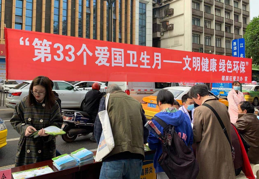 四川新闻网消息(李海霞 陈亚)今年4月是我国第33个爱国卫生月,4月16日,宜宾市翠屏区爱卫会部分成员单位,部分省市级卫生先进单位,区级卫生医疗单位,各镇、街道办事处及社区分别在人民路、中山广场等地开展主题为“文明健康绿色环保”的集中宣传活动。