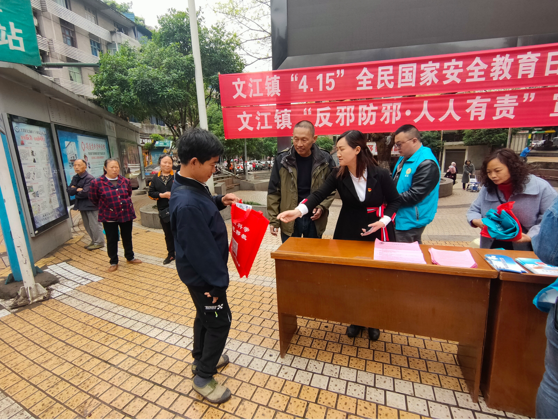 四川新闻网消息(左丹)4月15日,是我国第六个国家安全教育日。为践行总体国家安全观,统筹发展和安全,统筹传统安全和非传统安全,营造庆祝建党100周年良好氛围,当天,文江镇联合派出所、司法所在中心广场开展了“国家安全教育日”宣传活动。