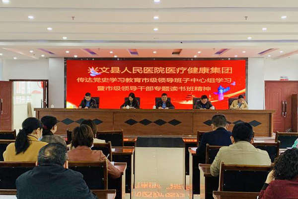 四川新闻网消息(曾维)2021年4月20日下午,兴文县人民医院集团党史学习教育第二次集中学习会在外妇11楼会议室召开,党委书记赵亮主持会议。此次会议以视频会形式进行,人民医院设主会场,成员单位设分会场,集团全体中层干部及党员参会。