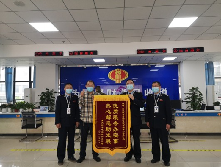 4月15日下午,该劳务公司代表将印有“优质服务办实事,热心解惑助发展”内容的锦旗送到高县税务局办税服务厅,对工作人员耐心细致的服务质效和认真负责的工作态度表示衷心感谢,进一步肯定了高县税务局实打实的便民利民举措。
