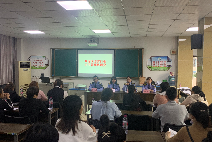 培训由二中队中队长潘倩主持,大队长陈敏结合当前我市国家卫生城市迎复审工作提要求,指出目前我区美容场所存在的主要问题,要求所有美容场所要强化法律法规及行业卫生规范的学习,不断完善卫生管理,增强依法经营意识,规范经营行为,为我区经济繁荣添砖加瓦。