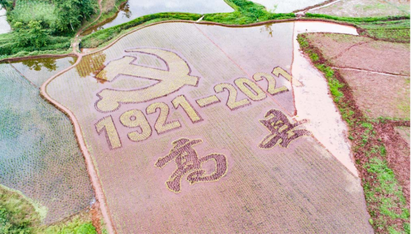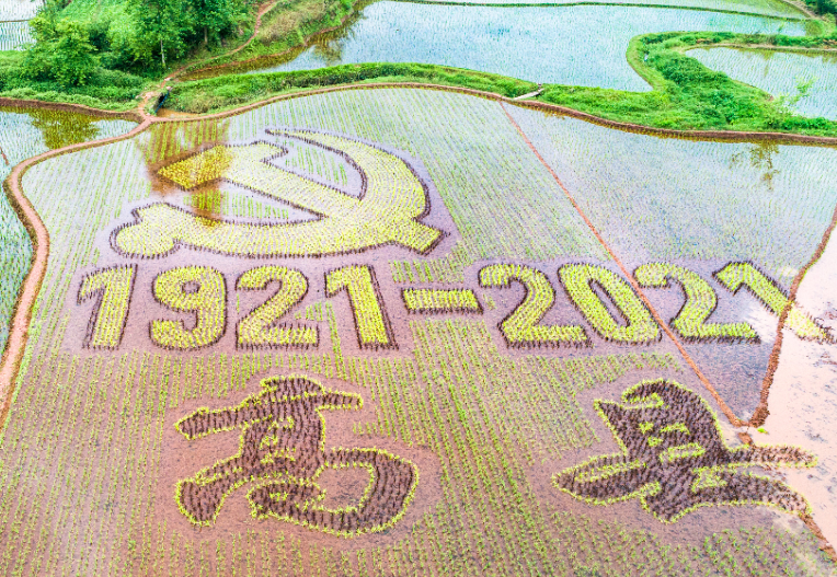 今年是中国共产党成立100周年,该县将传统农业与艺术创意、党建引领、乡村旅游相结合,将蓝天、稻谷、乡村等元素有机融合,以彩色稻作“颜料”,大地为“画布”,绘制出独具特色的稻田画,以崭新的乡村新貌,喜迎百年华诞。