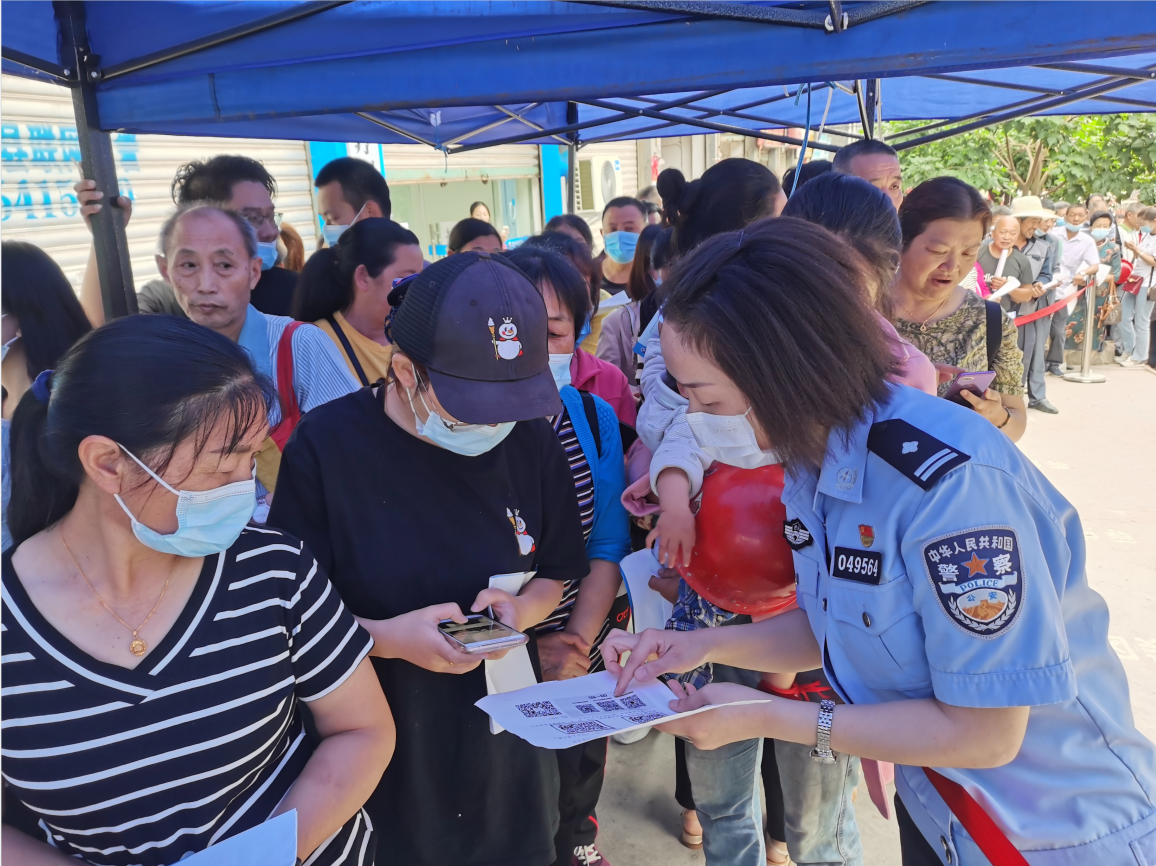 近日,在高县中医院“新冠”疫苗接种处,排起了长龙,高县庆符镇辖区居民积极响应号召,排队接种疫苗,高县公安局反诈宣传小组利用大家排队的时间和接种后观察的时间向广大人民群众开展了一次全面的反诈宣传活动。