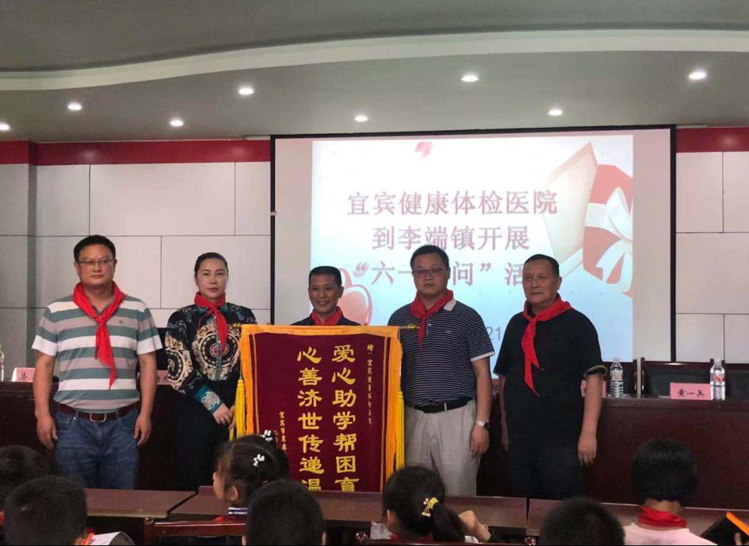 活动上,学生代表向出席活动的领导和来宾佩戴了鲜艳的红领巾,表达感激之情、感恩之心,李端镇党委、政府为爱心企业宜宾健康体检医院赠送锦旗致谢。