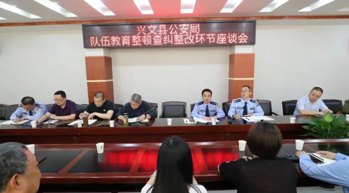 四川新闻网消息 5月27日下午,兴文县公安局组织召开队伍教育整顿查纠整改环节座谈会。市局第三指导组组长章悦、组员杨永春到会指导,两代表一委员、党政机关代表、律师代表、各服务业代表、社区干部、群众代表及部分案件当事人等共计50余人参加会议。会议由县局党委副书记、政委左剑军主持。