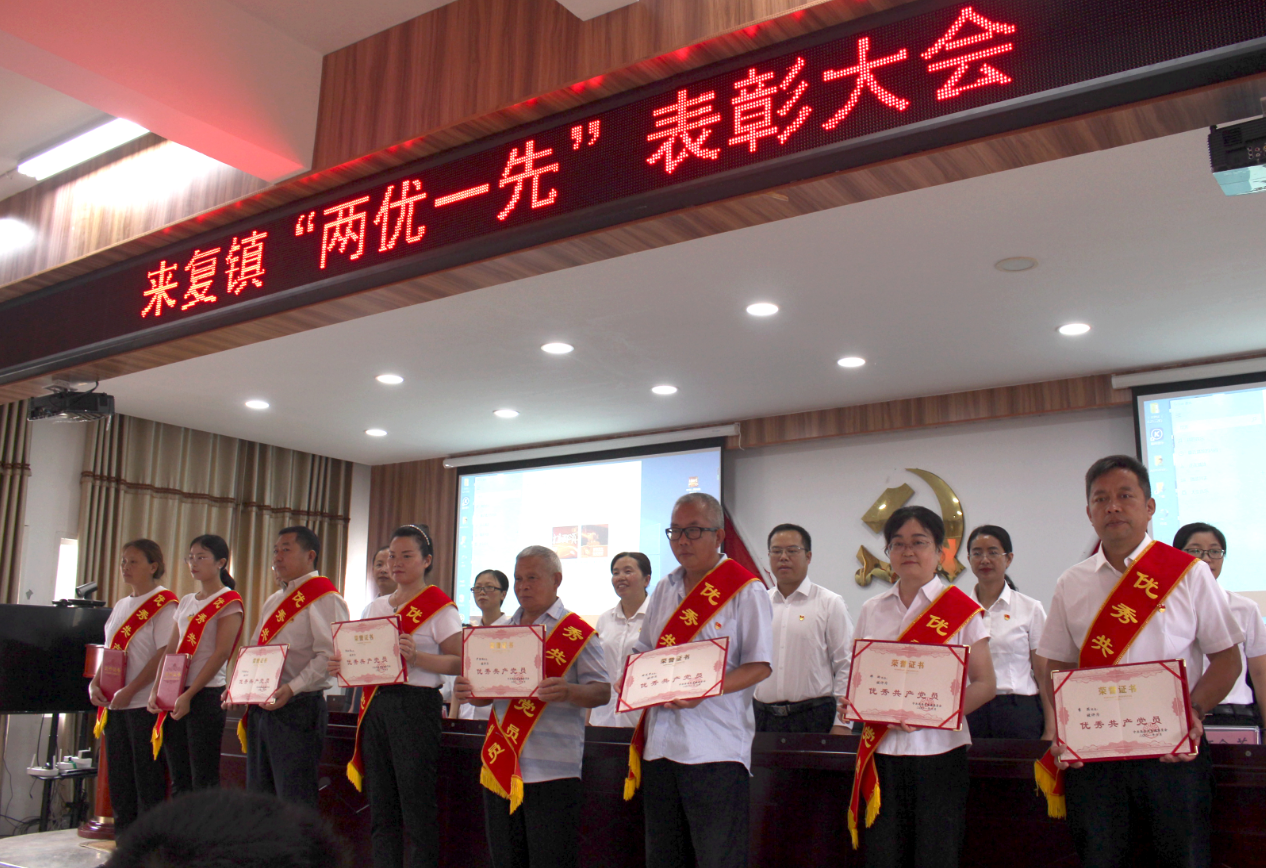 四川新闻网消息 百年征程照初心,奋楫扬帆启新程。在七一来临之际,来复镇举行了“两优一先”表彰大会,庆祝建党100周年。来复镇全体班子成员,各党组织书记,受表彰对象,老党员代表,新发展党员代表,驻村(社区)组长共100余人参加。