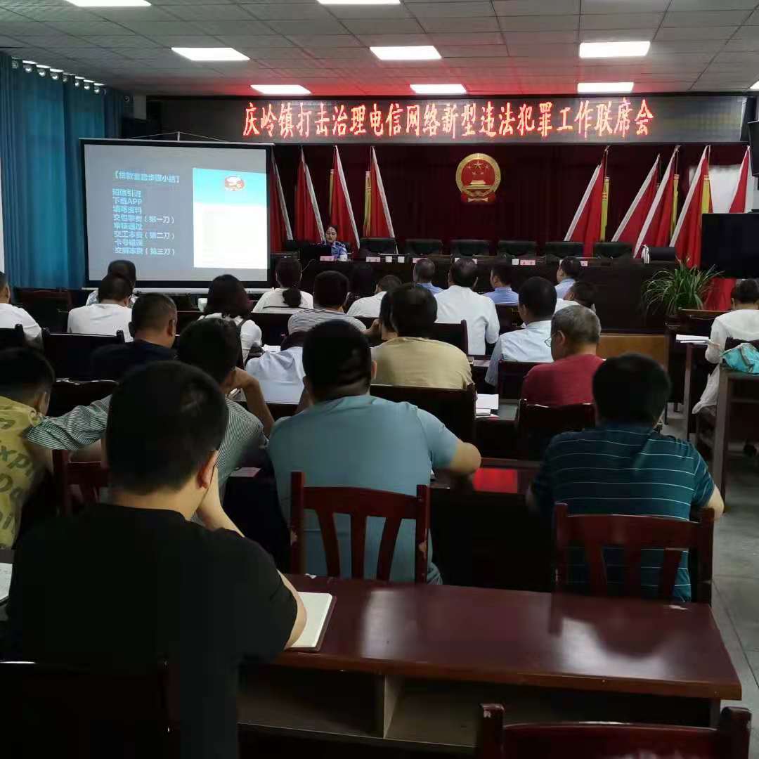 近日,高县公安局庆岭派出所在庆岭镇政府三楼会议室召开庆岭镇打击治理电信网络新型违法犯罪工作联席会,高县公安局党委委员、副局长兰君毅率县局反诈中心宣传民辅警一行,庆岭镇党政、社区、各村组干部和网格员以及相关单位、商业代表100余人参会。