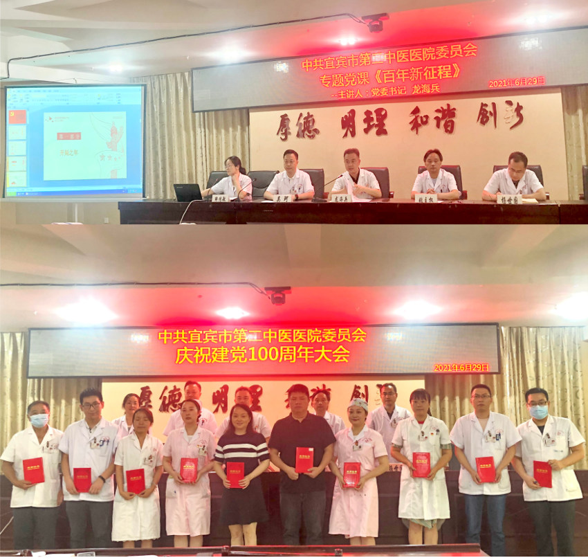 四川新闻网消息 6月29日下午,宜宾市第二中医医院在三楼大会议室召开了庆祝建党100周年大会。院内党政领导及所有党员、预备党员,优秀共青团员代表参加了会议。会议由党委委员、副院长吴珂主持。