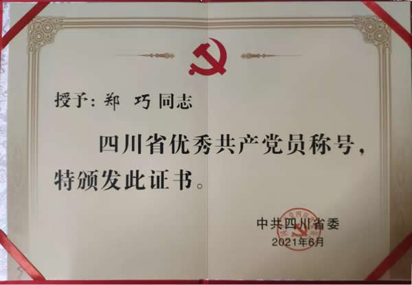 四川新闻网消息 6月30日上午10点,四川省“两优一先”表彰大会在成都锦江大礼堂举行,宜宾市一医院检验科检验师郑巧被授予“四川省优秀共产党员”称号。
