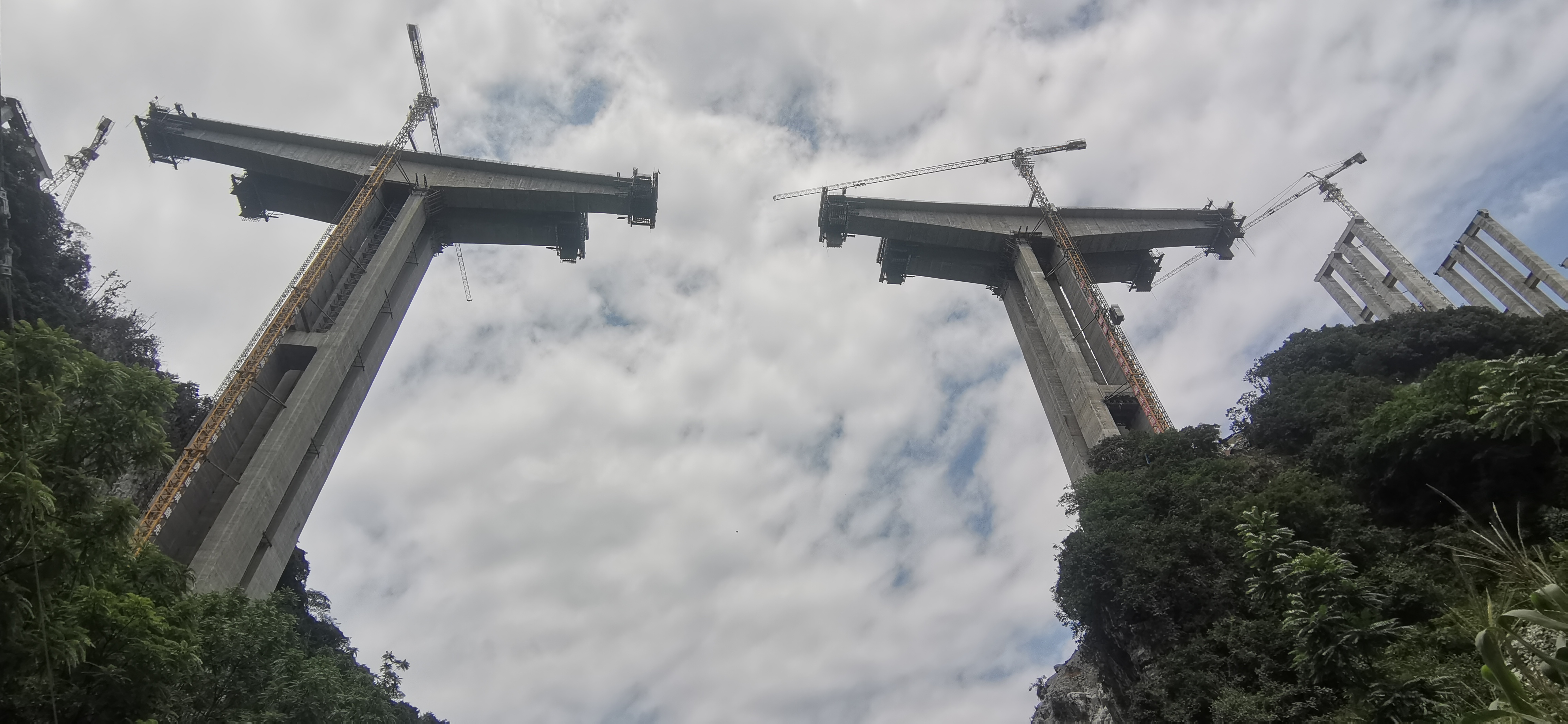 四川宜宾至云南彝良高速公路,过境筠连路段里程48.3公里,由5标中铁七局、6标中铁六局、7标中铁广州局三个标段负责建设。施工地区位于四川盆地与云贵高原之间的过渡带,地势起伏大,山势陡峭,灰岩地段峰丛林立,溶洞多,地质条件复杂,桥梁墩柱高度普遍较高。总工期由41个月调整为33个月,总工期压缩8个月,要求在2021年12月31日具备通车条件。