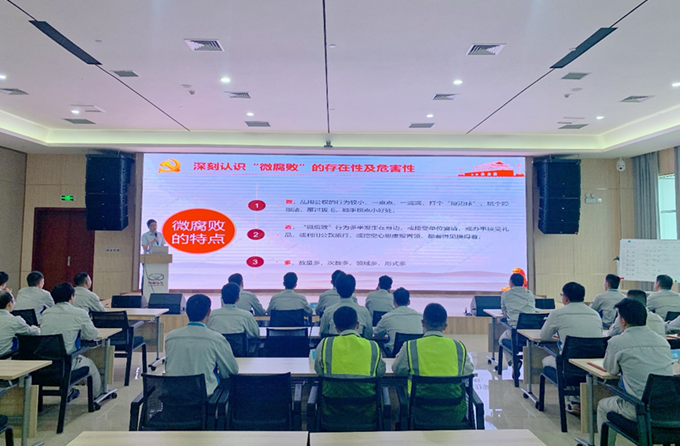 纪委书记曾辉就《坚守廉洁心 杜绝“微腐败”》为主题,结合车间日常工作中存在的廉洁风险隐患,从“什么是微腐败”“微腐败的危害性”“廉洁从业”三个方面展开讲解。告诫每一位从业人员要正确树立“三观”,知敬畏、存戒惧、守底线,积极履职担当,脚踏实地做好本职工作。