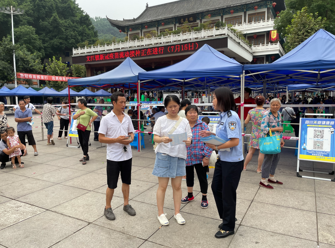 四川新闻网消息 为进一步提高辖区群众反诈意识,避免受害群体增加,7月15日上午,高县公安局文江派出所民警利用文江镇新冠疫苗流动接种的机会,到文江镇柳湖公园开展反诈宣传活动。