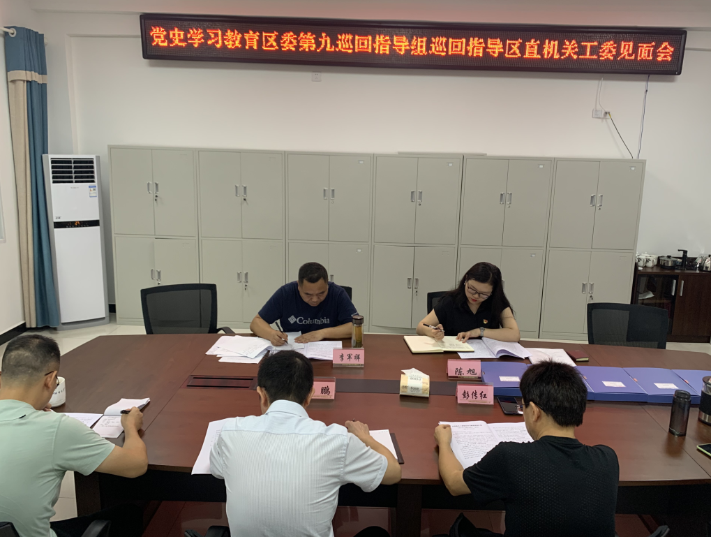 四川新闻网消息 7月15日,党史学习教育区委第九巡回指导组巡回指导区直机关工委见面会暨理论学习中心组党史学习教育专题学习研讨会召开,区委第九巡回指导组副组长李军祥及成员到会指导,区直机关工委常务副书记彭传红主持会议,区直机关工委班子成员及全体干部职工参加会议。