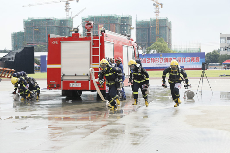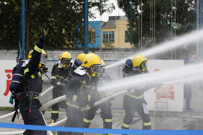此次比赛的项目有负重登10楼、背负空气呼吸器5000米跑、一人三盘水带连接操、信通科目操、手抬机动泵出水操、建筑火灾内攻操、百米障碍救助操等科目。赛场上,宜宾支队参赛队员大展身手,不畏炎热酷暑,严守比赛章程,专注于手中任务,以团结拼搏,锐意进取的精神风貌投入到比赛之中,充分展现出了宜宾消防专职队员过硬的思想意志、体能素质、技术战术和纪律作风,比出了风格,赛出了水平。