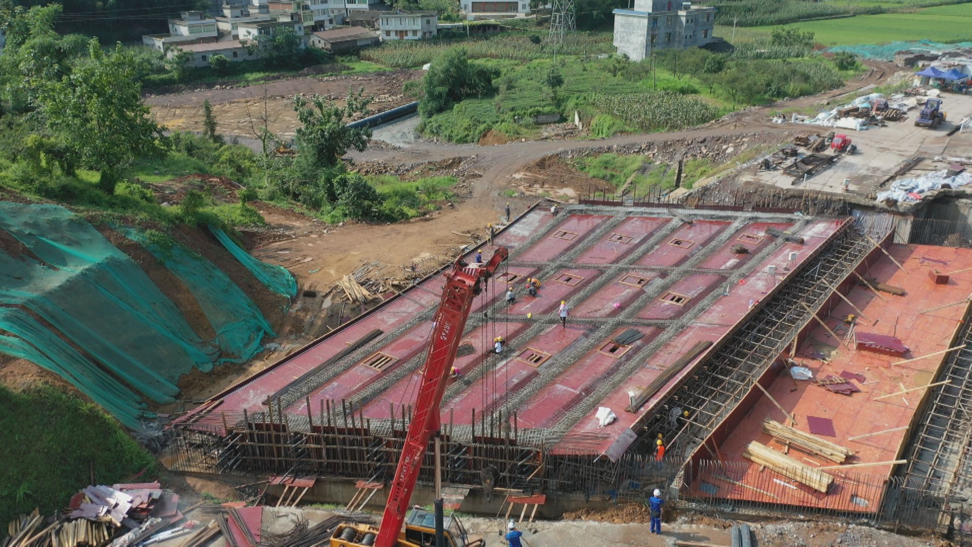“这个桥采用的是现浇梁施工,目前已经完成了50%,计划是在8月底全部完成。”在筠连镇荆花村的宜彝高速新增筠连北互通上跨D匝道主线桥施工工地,工人师傅们正顶着烈日开展钢筋铺装和绑扎,为接下来的桥面浇筑做好准备。目前,该桥梁已经完成左幅底板浇筑。