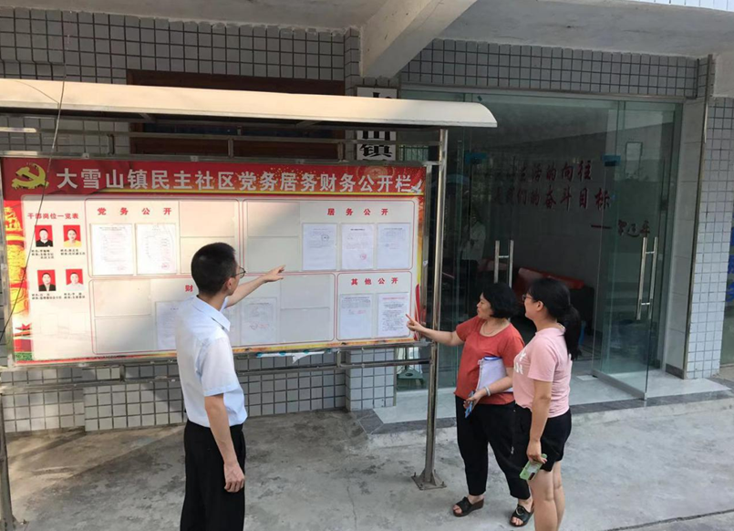 | (图为:大雪山镇纪委到民主社区实地检查防汛物资“三务”公开情况) |