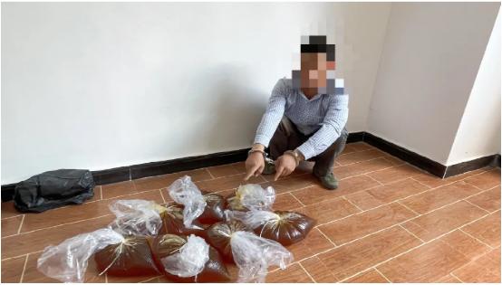 民警接到报警后,立即前往事发地点。在卜好村办公室当场发现正在售卖疑似假蜂蜜的嫌疑人曹某。经调查了解,曹某是湖南人,和自己的“队友”在云南制作好勾兑的假蜂蜜,通过边界进入宜宾筠连,最近在筠连县丰乐乡卜好村售卖假蜂蜜。该蜂蜜添加大量白糖、红糖,实际蜂蜜含量不足一成,以次充好。曹某谎称自己是某单位工作人员在筠连出差,在途径山区时发现了“野生蜂蜜”,向村民们便宜出售。最终共有十余名村民受骗,花了6000元买了50余斤“野生蜂蜜”,民警总共收缴100余斤假蜂蜜。