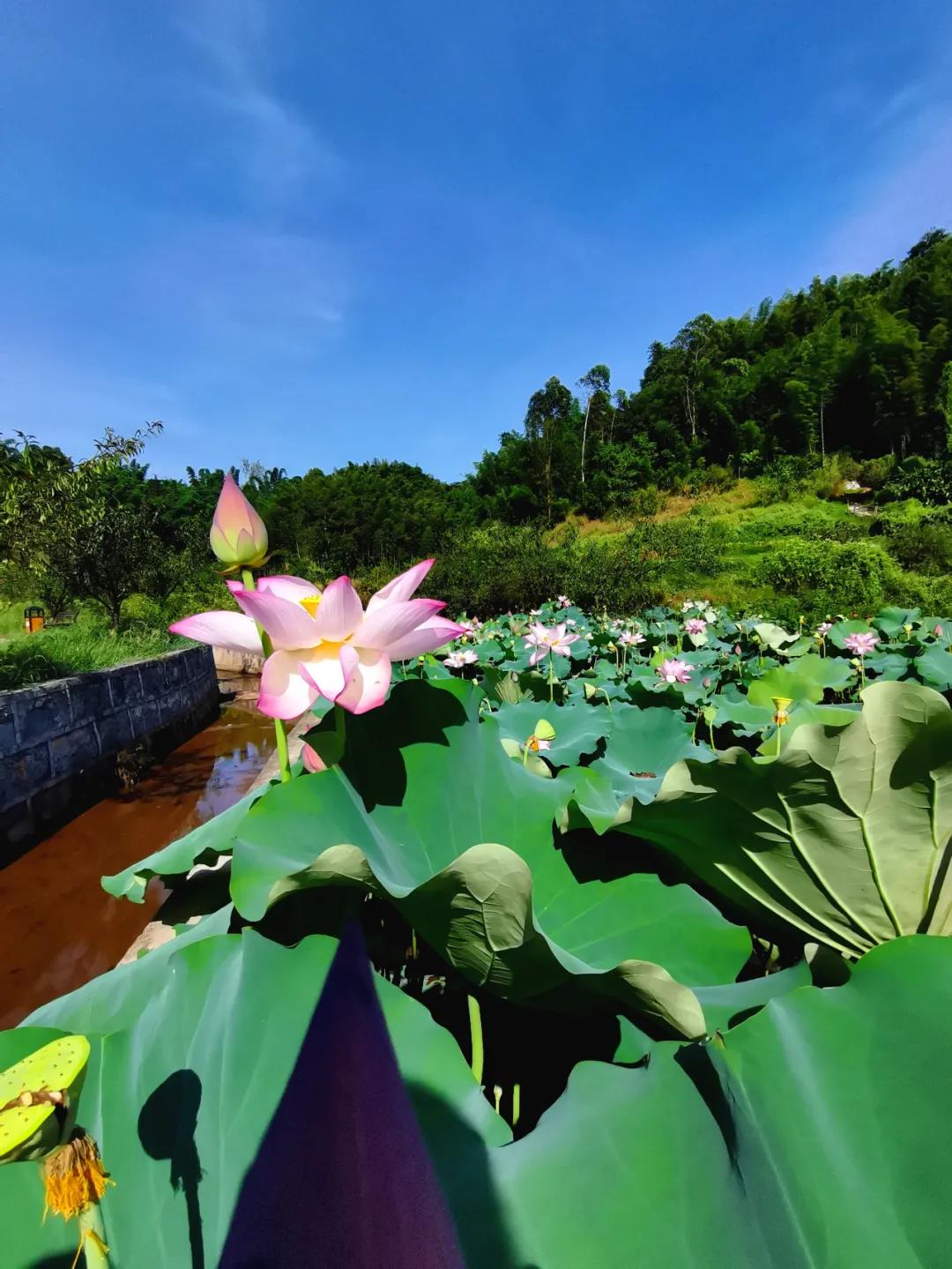 一池新福荷花,波影推送十里路,去向天涯,斜阳中映了红霞,染了几缕乡愁。