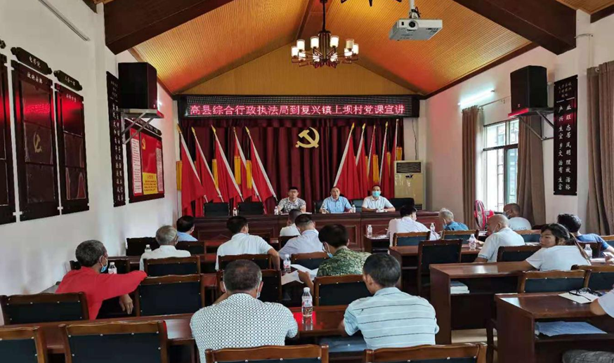 四川新闻网消息 8月25日,高县综合行政执法局党支部到复兴镇上坝村开展“奋进新时代 做合格党员 建美丽新村”8月主题党日活动暨党史学习教育专题党课。县综合行政执法局党支部全体党员和上坝村党支部党员、村组干部参加会议。