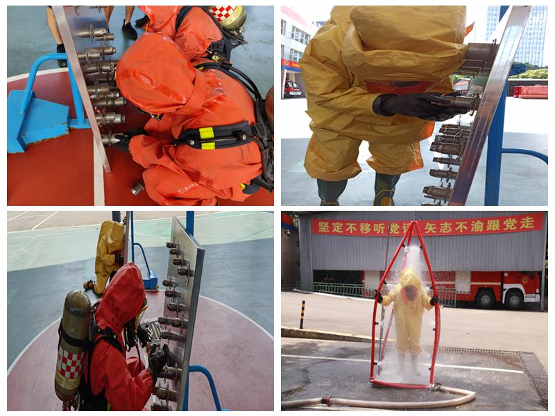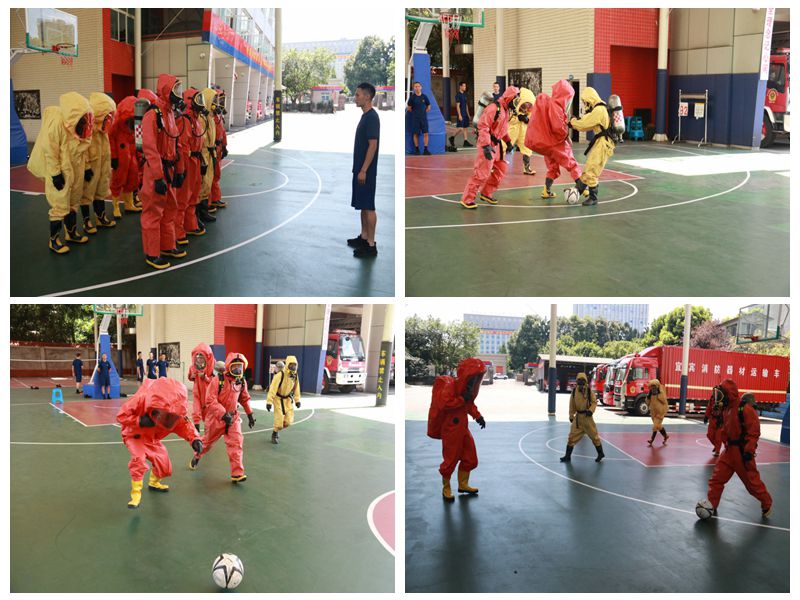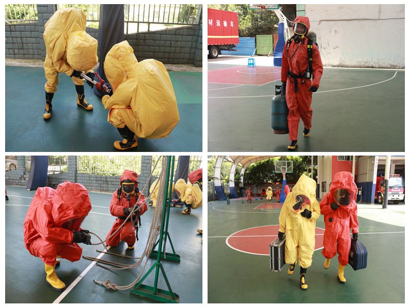 该项训练主要让指战员穿着防化服,分组开展拧螺丝、踢足球、打篮球、水枪组装拆卸、重物搬运、救人绳结、防化堵漏、防化洗消等适应性训练。指战员分别着好一级、二级防化服后,模拟化工现场会出现的情况,进行训练。训练过程中,全体指战员克服炎热天气带来的影响,刻苦训练,通过各小组的共同努力,成功完成每一项训练。训练结束后参训指战员一起坐下来探讨交流,交流过程中各参训指战员积极发言、各抒已见,结合自身在刚刚的训练过程中的感受及困惑进行心得体会交流,在交流中总结经验、共同提高。
