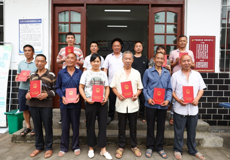 | 金秋湖镇谢坝社区村23户跨社建房农户借力宅改喜获不动产权证 |