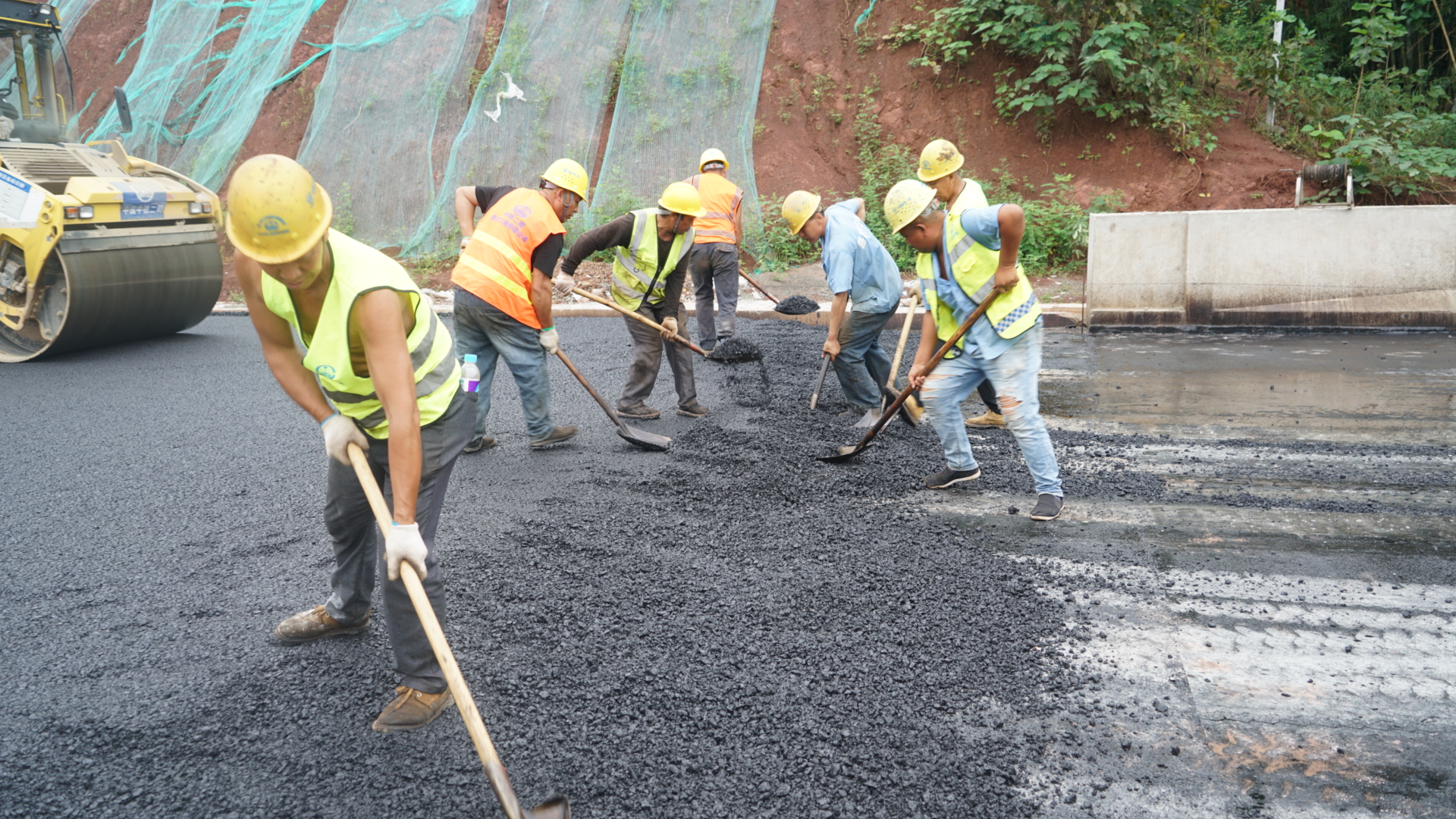 据施工现场路面负责人介绍,为确保年底通车目标的实现,中铁二局六公司在高县段总共投入2台沥青摊铺设备,50余名职工参与到沥青摊铺工作中,预计国庆期间将完成4标路段的摊铺工作,之后将转战其余标段。